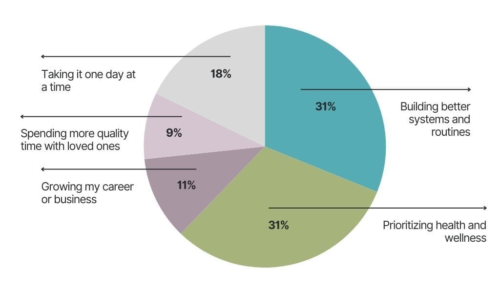 I'm fascinated that systems and health tied for first place at 31% each. It makes sense, though… they're kind of two sides of the same coin. Building better routines is often how we actually prioritize our health, and vice versa. We know what we want to do (eat better, exercise more, get enough sleep), but we need the systems to make it sustainable.